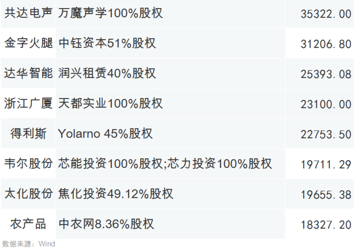 2019年高溢價并購重點標的: