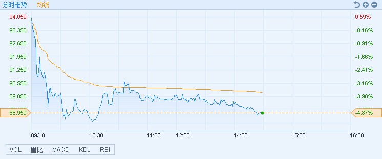 今日早盤A股鋼鐵板塊低開低走,現鋼鐵板塊跌超3%,馬鋼股份(600808)跌逾6%,受此影響,港股馬鞍山鋼鐵股份(00323)也跟隨下跌,截至10時02分,跌8.25%,報價3.78港元,成交額9244萬。