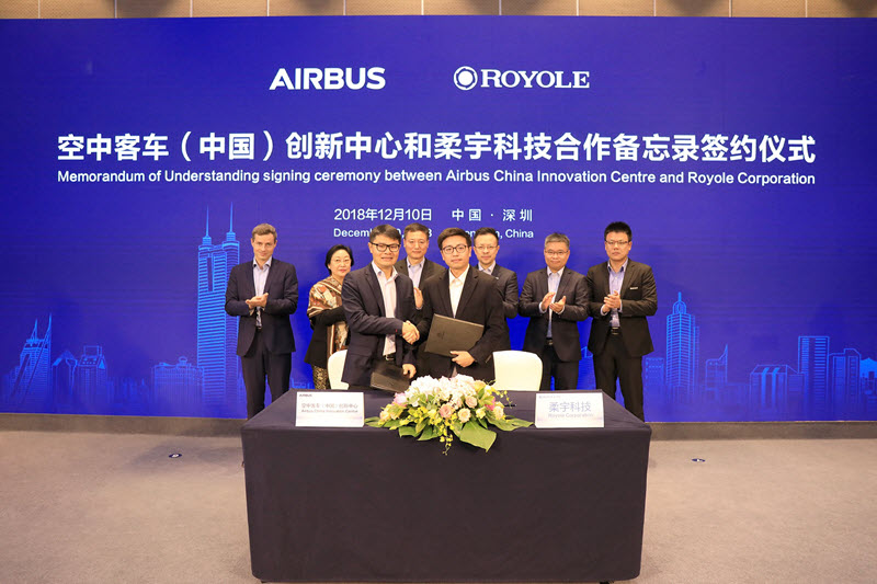 據(jù)了解,早在2018年12月,柔宇科技有限公司與空中客車(中國)創(chuàng)新中心在深圳正式簽署戰(zhàn)略合作備忘錄,雙方將就柔性電子技術(shù)在飛機(jī)客艙等場景的應(yīng)用和商業(yè)合作開展研究,探索柔性顯示、柔性傳感在客艙等場景內(nèi)的應(yīng)用,在客艙環(huán)境、安全性、節(jié)能等方面做進(jìn)一步提升,為乘客打造未來化、數(shù)字化、個(gè)性化的乘機(jī)體驗(yàn)。