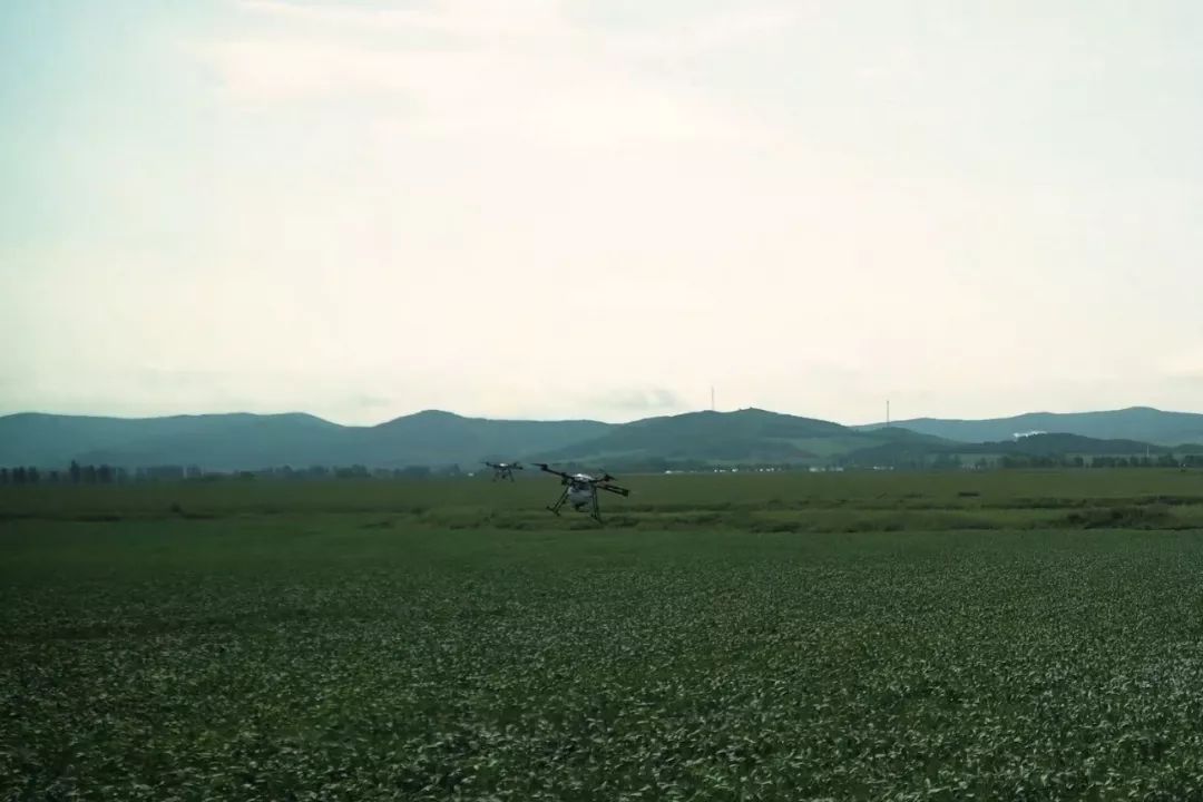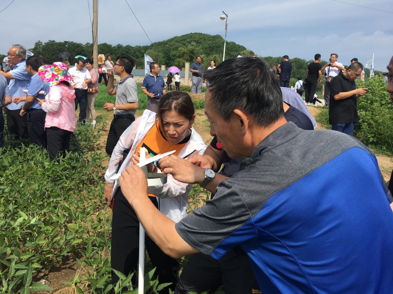 開班儀式前,參會領導、專家及各省市參會代表現(xiàn)場觀摩位于敦化市鴻發(fā)現(xiàn)代生態(tài)農場的全國生物食誘劑防控大豆食心蟲技術試驗示范區(qū),在示范區(qū)現(xiàn)場觀摩無人機噴灑生物食誘劑。