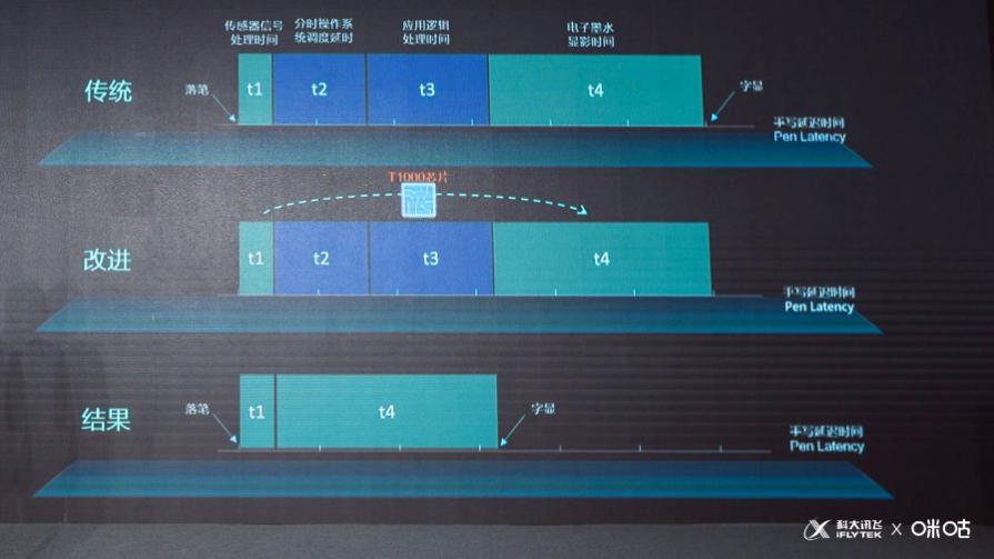 為了實(shí)現(xiàn)這個突破,智能本與E Ink原廠通力合作、聯(lián)合調(diào)優(yōu),在業(yè)界首次實(shí)現(xiàn)了墨水屏手寫處理芯片化(T1000芯片),直接將寫顯延遲中的軟件處理部分通過芯片實(shí)現(xiàn),大大的縮短了墨水屏的寫顯延遲。當(dāng)前,在咪咕訊飛智能本青春版中,寫顯延遲僅30毫秒左右。在用戶直接的主觀體驗(yàn)測試中,已經(jīng)做到了“幾乎無延遲感”、“像真紙一樣的書寫速度”。