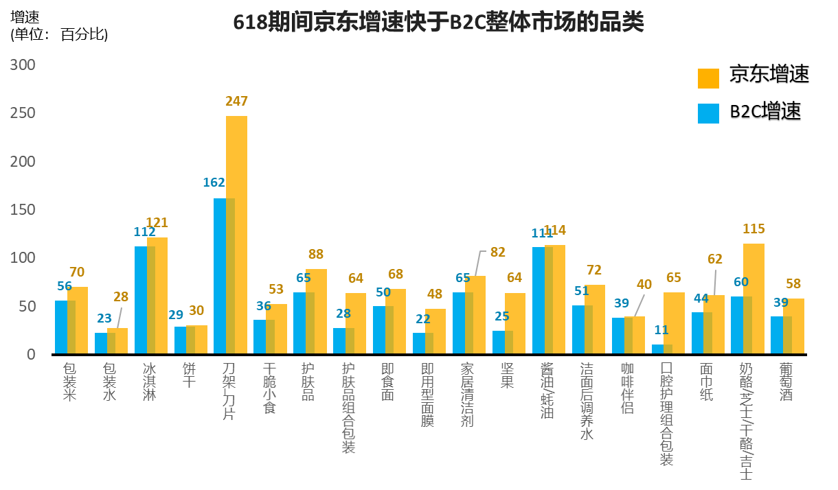 尼爾森618期間監(jiān)測的快消品類數(shù)據(jù)發(fā)現(xiàn),京東增速超過市場整體增速,從細(xì)分品類分析,618期間以食品為代表的大量民生品類在京東增速明顯超越大盤,充分展示了消費(fèi)者對于京東平臺的信賴。京東大數(shù)據(jù)則顯示在2020年上半年已經(jīng)有超過10000個(gè)品牌在京東超市實(shí)現(xiàn)成交額同比增長100%,7000個(gè)品牌實(shí)現(xiàn)成交額同比增長200%,5000個(gè)品牌實(shí)現(xiàn)成交額同比增長300%,有200個(gè)品牌實(shí)現(xiàn)成交額超億元,超20個(gè)品牌實(shí)現(xiàn)成交額超10億。
