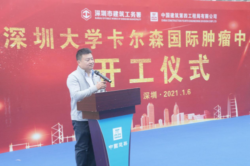 劉文作表態(tài)發(fā)言,中建四局作為唯一一家總部設(shè)在粵港澳大灣區(qū)的主力工程局,將嚴(yán)格按照深圳市工務(wù)署相關(guān)要求,發(fā)揚艱苦奮斗精神,以高標(biāo)準(zhǔn)、嚴(yán)要求的工作態(tài)度,將深圳大學(xué)卡爾森國際腫瘤中心項目建設(shè)成優(yōu)質(zhì)工程、精品工程、廉潔工程。