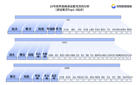 另外,一部分乘客通過換乘,分流到了10號線以外的辦公區(qū)域,例如國貿(mào)、車公廟、南山科技園等等。