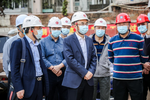 李卓一行在門口測溫登記后進(jìn)入施工區(qū)域,實(shí)地調(diào)研了項目施工進(jìn)度,同時聽取項目負(fù)責(zé)人詳細(xì)介紹了項目春節(jié)期間施工部署等相關(guān)情況,對項目周密詳細(xì)的安排表示肯定。