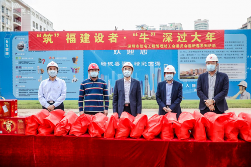 李卓對留深過年、春節(jié)加班的工友和管理人員表示感謝,他要求:一、要安排好所有留深工友、班組和管理人員,營造好氛圍,做好后勤保障工作;二、要嚴(yán)格按照工務(wù)署下發(fā)的關(guān)于春節(jié)期間不停工項目的安全生產(chǎn)、疫情防控的相關(guān)要求,開展施工生產(chǎn)。隨后,在一片歡樂祥和的氛圍里,工務(wù)署領(lǐng)導(dǎo)為工友們發(fā)放春節(jié)慰問品。