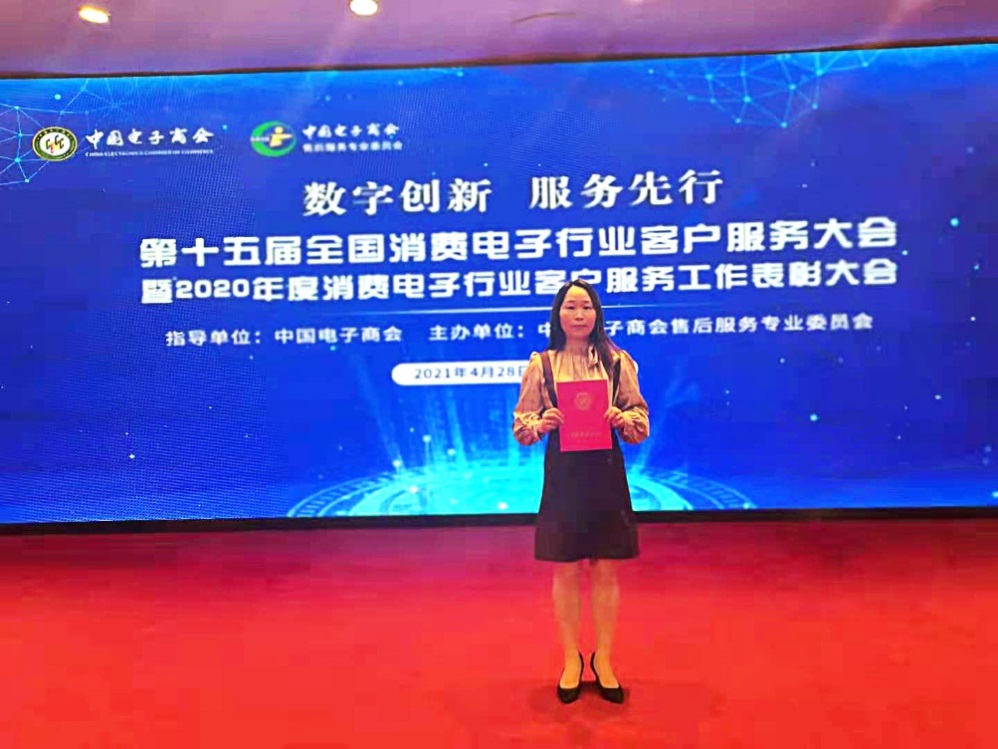 本次大會(huì)上榮獲“2020年度消費(fèi)電子行業(yè)客戶服務(wù)優(yōu)秀工作者”的錢云是國美管家全體后服務(wù)工作者的縮影,國美管家各地的服務(wù)團(tuán)隊(duì)均以專業(yè)、標(biāo)準(zhǔn)、熱情的服務(wù)得到了廣大消費(fèi)者認(rèn)可。