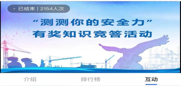為切實(shí)提升公眾安全生產(chǎn)意識及知識水平,此次啟動儀式特別準(zhǔn)備了“測測你的安全力”線上安全生產(chǎn)知識有獎問答活動,題目涵蓋高處作業(yè)、生產(chǎn)自救、用電安全等安全生產(chǎn)知識要點(diǎn),寓教于樂。