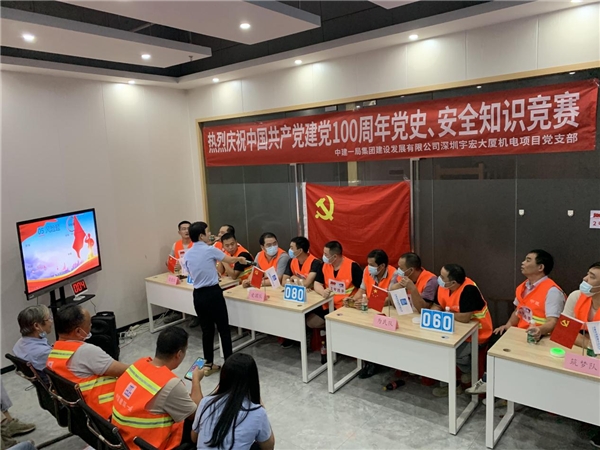 讀特客戶端·深圳新聞網(wǎng)2021年7月30日訊 同心筑夢,百年芳華,為扎實(shí)推進(jìn)黨史學(xué)習(xí)教育走深走實(shí),創(chuàng)新黨史知識學(xué)習(xí)方法,濃厚學(xué)習(xí)氛圍,增強(qiáng)學(xué)習(xí)興趣,近日,中建一局集團(tuán)建設(shè)發(fā)展有限公司深圳宇宏大廈機(jī)電項(xiàng)目黨支部舉辦以慶祝中國共產(chǎn)黨建黨100周年“學(xué)黨史、守初心、保安全、促發(fā)展”為主題的黨史、安全知識競賽。此次活動參賽代表隊(duì)是由項(xiàng)目廣大工友組成“忠黨隊(duì)”、“愛國隊(duì)”、“為民隊(duì)”、“筑夢隊(duì)”,共計(jì)50余人參加了本次活動。
