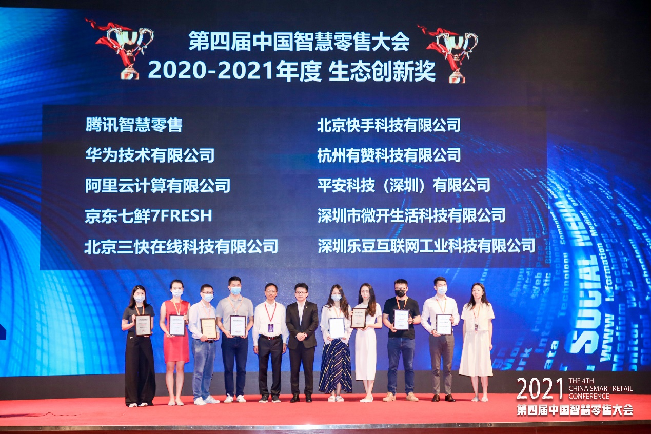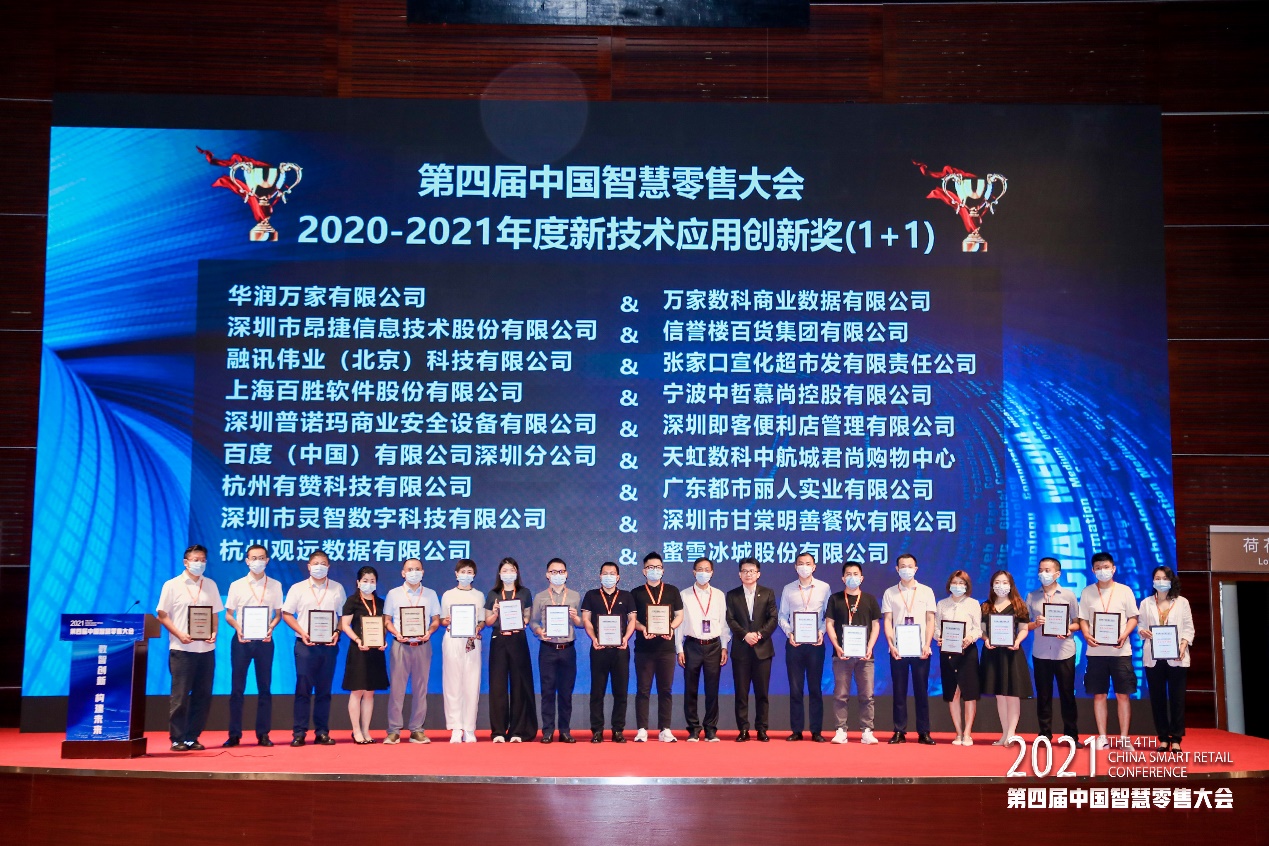 大會(huì)開幕式上頒發(fā)“2020-2021年度智慧零售系列大獎(jiǎng)”,大會(huì)組委會(huì)從行業(yè)新技術(shù)應(yīng)用創(chuàng)新;經(jīng)營(yíng)、商業(yè)、組織、管理、服務(wù)等模式創(chuàng)新;全渠道、全產(chǎn)業(yè)鏈、全生產(chǎn)要素賦能等生態(tài)創(chuàng)新;領(lǐng)軍者推動(dòng)智慧零售創(chuàng)新發(fā)展等四個(gè)維度,共頒發(fā):新技術(shù)應(yīng)用創(chuàng)新獎(jiǎng)、模式創(chuàng)新獎(jiǎng)、生態(tài)創(chuàng)新獎(jiǎng)、創(chuàng)新人物獎(jiǎng)四大獎(jiǎng)項(xiàng)。華潤(rùn)萬家、靈智數(shù)科、有贊、樂信等企業(yè)獲此榮譽(yù),天虹股份譚曉華、百果園焦岳等人獲得創(chuàng)新人物獎(jiǎng)。