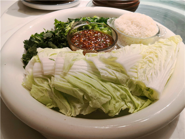 尤其扎眼的,正對大門的明廚亮灶上的幾塊牌匾,一下子就勾起人的食欲:老式熏豬手、手工燒老雞、烏蘇里江鰉魚、興凱湖大白魚、查干湖胖頭魚、火夫灶羊腿。這些都是地道的東北味啊!據(jù)介紹,老板湯長明是黑龍江“龍菜”系傳承領(lǐng)軍人物,祖孫四代傳承東北菜廚藝,現(xiàn)在關(guān)東大院餐飲集團(tuán)董事長。當(dāng)然,許多大家耳熟能詳?shù)拇蟊姴艘矐?yīng)有盡有,如:殺豬菜、小雞燉蘑菇、得莫利燉魚、大鵝燉寬粉、黑皮肘子、酸菜粉、地三鮮、東北鹵水點豆腐、金湯遼參、黃魚燒土豆、紅燒肉黃金勾......看得人口水直冒。加之,整個門店的布局也十分特別,一樓明廚亮灶之外,主要是大堂散座,周邊還有不少的書籍、酒架;二樓主要是包間,簡潔明亮??梢哉f,在此可以感受到一股濃濃的關(guān)東風(fēng)情。