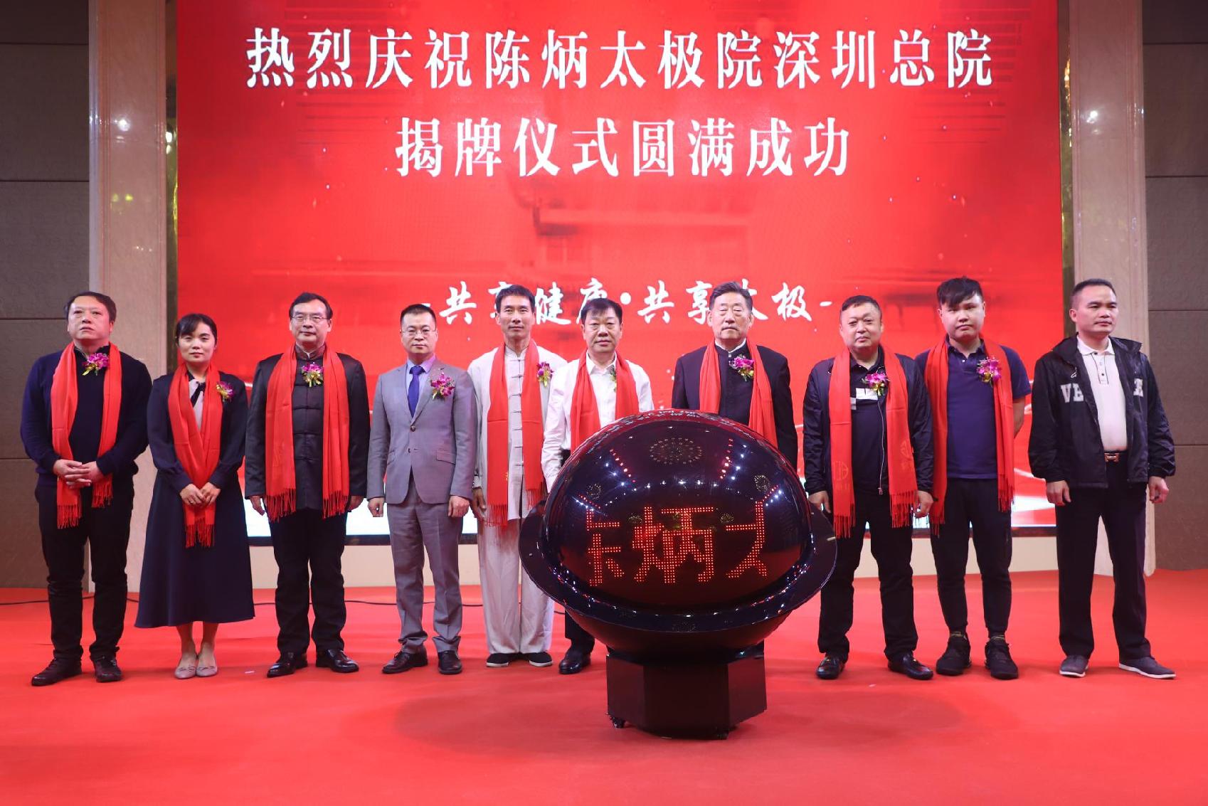 隨后,李培華縣長,王歡歡副縣長,陳式太極拳第十一代傳人陳小旺,陳炳院長,寶利來集團(tuán)董事長文衛(wèi)沖,寶利來集團(tuán)總裁文沛榮,陳炳太極院深圳總院院長謝威龍等嘉賓共同為陳炳太極院深圳總院揭牌。