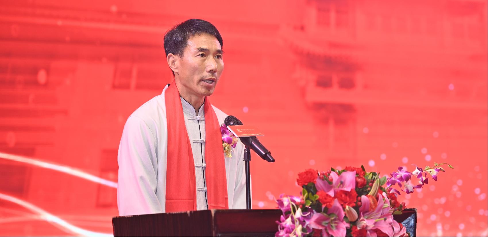 謝威龍?jiān)洪L為本次活動(dòng)致歡迎辭,他從機(jī)緣巧合接觸太極并與陳炳老師結(jié)緣,到?jīng)Q定將太極大健康養(yǎng)生當(dāng)做終身事業(yè)去弘揚(yáng),謝威龍?jiān)洪L慷慨激昂的致辭中流露出對(duì)太極的熱愛和傳承太極文化的決心。他呼吁現(xiàn)場所有人加入到弘揚(yáng)太極文化的事業(yè)中來,將健康及和諧傳遞到全社會(huì)。