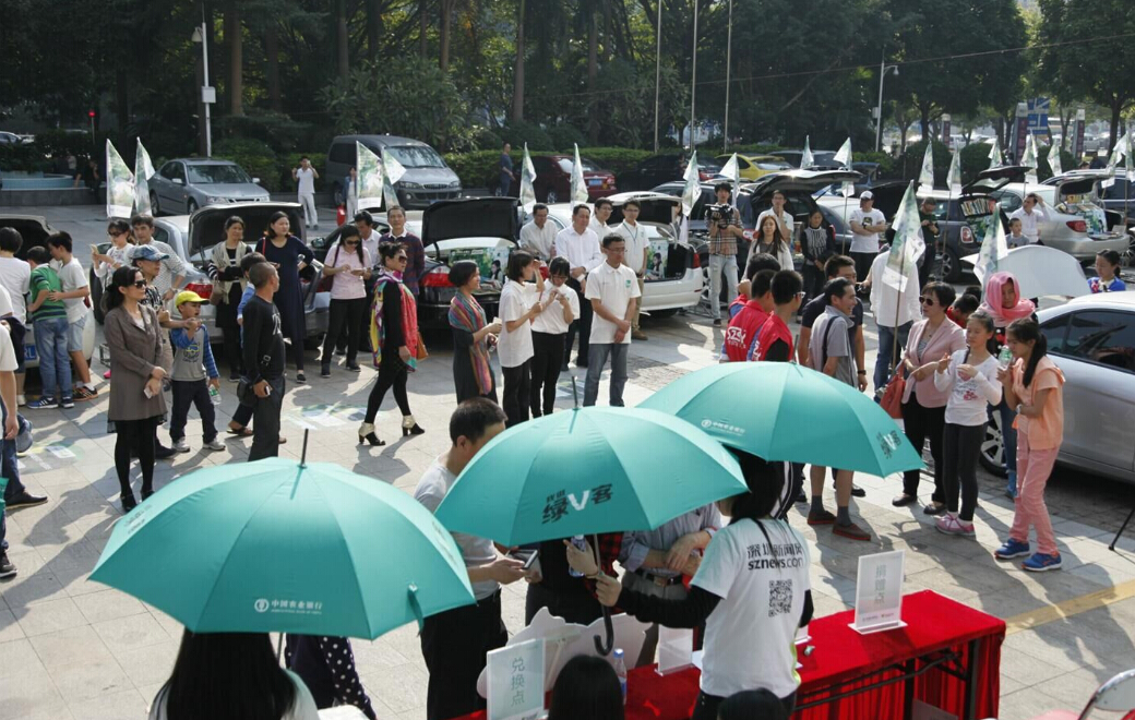 深圳市實(shí)驗(yàn)中學(xué)的車尾箱展位前圍滿了前來換書的人