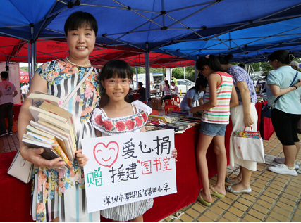 深圳市錦田小學(xué)的部分學(xué)生家長組團從羅湖趕至活動現(xiàn)場,他們帶來了200余本書,剛一擺出來,展區(qū)前就圍滿了人?!霸诹私獾竭@次愛心捐書活動后,我們特意從學(xué)生捐獻的書籍中精心挑選出200余本帶到現(xiàn)場。捐書活動與我們的教學(xué)理念很契合,我們愿意讓孩子積極參與,在他們幼小的心靈播下愛的種子,在成長的道路上時刻不忘幫助他人。”錦田小學(xué)劉向陽副校長告訴記者。