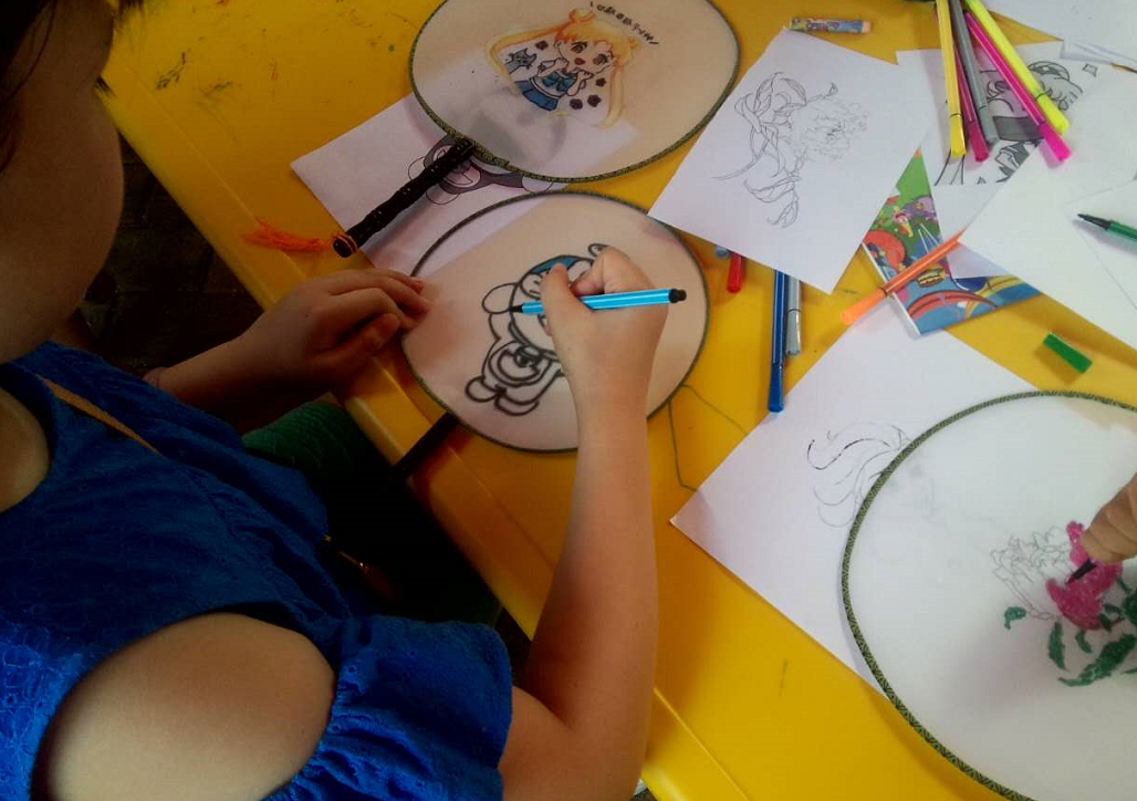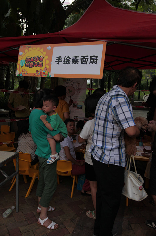 而在所有體驗(yàn)項(xiàng)目中,扇子彩繪成為人氣最旺的一個(gè)體驗(yàn)項(xiàng)目。從活動(dòng)開始,一波又一波的小朋友涌進(jìn)扇子彩繪體驗(yàn)區(qū)。有的家長(zhǎng)和孩子齊上陣,挑選好自己喜歡的扇面后,就在深圳國(guó)子監(jiān)文化傳播有限公司的專業(yè)老師指導(dǎo)下開始精心創(chuàng)作,充滿童趣的卡通畫、意境悠遠(yuǎn)的山水畫、栩栩如生的工筆畫,每一幅作品都引來眾多的圍觀贊嘆。