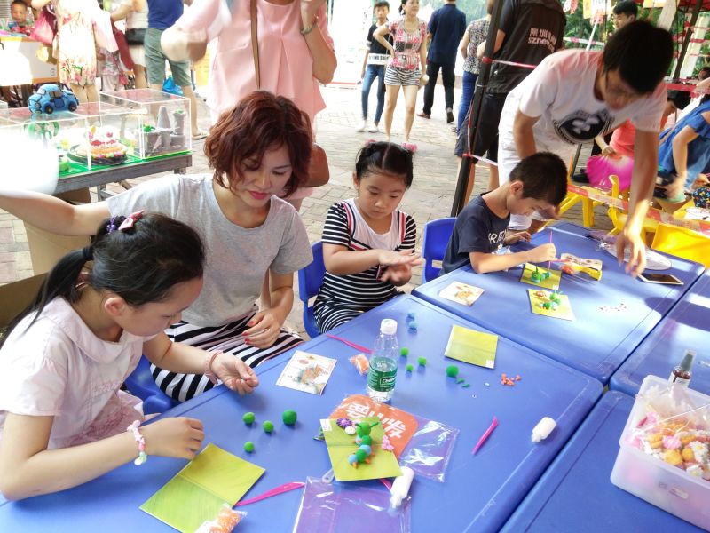 棉花糖、跳房子,讓家長(zhǎng)們找回了童年的記憶和樂趣。而動(dòng)手動(dòng)腦的扇子彩繪、剪紙、中國(guó)結(jié)制作、軟陶制作則讓孩子們體驗(yàn)到手工制作的樂趣。