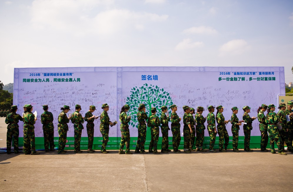 近4000名深圳職業(yè)技術(shù)學(xué)院的大一新生積極參與,在各個(gè)展位前領(lǐng)取宣傳手冊(cè)、折頁,并在簽名版上爭(zhēng)相簽名留念。但這場(chǎng)活動(dòng)并不是在深圳職業(yè)技術(shù)學(xué)院校園,而是在深圳國防教育基地。