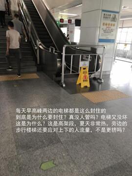 在7月2日的這條投訴中,有市民還指出了電梯停運時間的不合理,稱木棉灣站的地鐵每逢工作日高峰期就“暫停使用”,到了平峰期就正常運行。這也引起了其他一些乘客的質(zhì)疑。家住木棉灣站附近的李先生說:“非高峰時段電梯就能用,說明電梯本身沒問題,那為什么不開放給人多的時候用呢?”市民張先生則認為,地鐵方面可能是為了降低維護成本,“怕人多踩壞了,要花錢花時間修唄”。但也有市民猜測電梯停運或有安全方面的考慮?!爱吘共粫o緣無故就停了吧,可能是考慮到高峰客流量多,所以關(guān)掉不用的?!倍排勘硎?,可以接受因為安全問題而采取的停運措施,“走走樓梯也沒有什么。