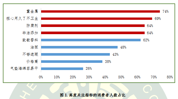 對于氣墊粉底這類兼具BB/CC霜和粉底功效的新型彩妝產品,消費者最擔心的問題是什么呢?項目調查數據顯示,關注氣墊粉底“重金屬”問題的消費者占比高達74%,“擔心氣墊粉底用久了不衛(wèi)生”的消費者占比為69%,還有64%的消費者關注“防腐劑”和“非法添加劑”問題。