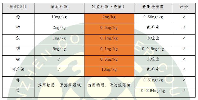 檢測結果顯示:對于有限量要求的重金屬,8款氣墊粉底均滿足國標和歐盟最嚴格的限值要求;對于沒有限量要求的重金屬鉻和釹,也滿足在正常的,或合理預見的使用條件下不對人會體造成危害。