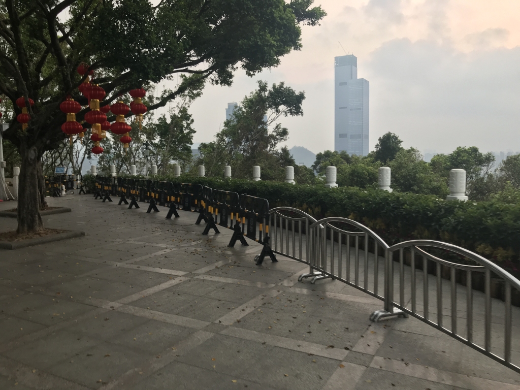 10月9日,有市民發(fā)帖稱,蓮花山公園山頂廣場(chǎng)上以及廣場(chǎng)四周的漢白玉欄桿前,都被人為設(shè)置了一圈“鐵馬”。由于蓮花山山頂是深圳著名的旅游景點(diǎn),該市民認(rèn)為設(shè)置圍欄會(huì)使很多游客無(wú)法近距離合影。與此同時(shí),市民還反映如要靠近廣場(chǎng)四周的漢白玉欄桿前拍照,就會(huì)被公園保安阻攔。保安稱要靠近欄桿拍照,則必須到管理處開證明,其質(zhì)疑該項(xiàng)規(guī)定不合理。
