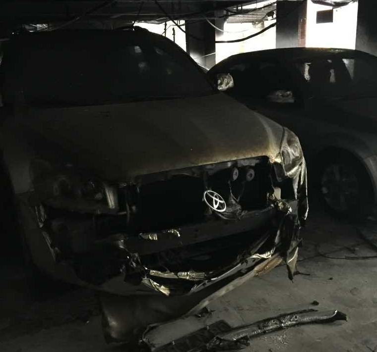 遭受火災(zāi)的底下停車(chē)場(chǎng)(網(wǎng)友“劉亞1”供圖)