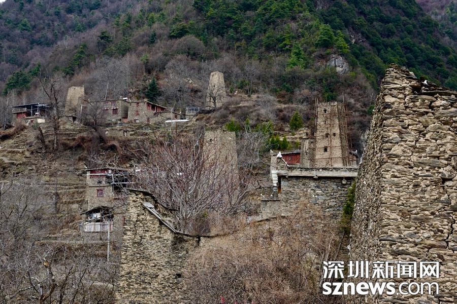 黑虎羌寨古稱“黑貓寨”,修建于唐代以后。是當(dāng)?shù)匾恢甲逍〔柯錇榈钟练謹(jǐn)_建起來的“邛籠”(石砌碉樓)。古寨中現(xiàn)在留存高高矗立的十一座羌碉,保持著當(dāng)年風(fēng)煙滾滾的御敵氣勢。李仁奇 攝