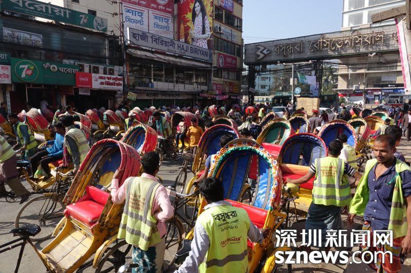 首都達卡匯聚了1100多萬人,生存與忙碌是這個城市的主調(diào),鮮艷的色彩,比如花里胡哨的三輪車和婦女大紅大綠的服裝只是其裝扮而已。李仁奇攝