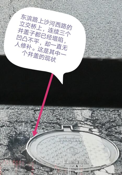 而東濱路上沙河西路的立交橋上井蓋凹凸不平的情況,因井蓋設(shè)備屬水務(wù)部門管養(yǎng),我局將協(xié)調(diào)水務(wù)部門進(jìn)行調(diào)整修復(fù)。