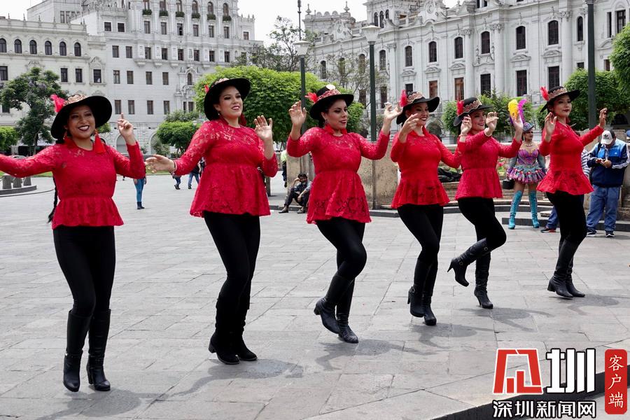 市中心武器廣場幾支中老年拉丁舞蹈隊(duì)艷麗的化妝和特色鮮明的民族服裝吸引著眾多的游客。李仁奇攝