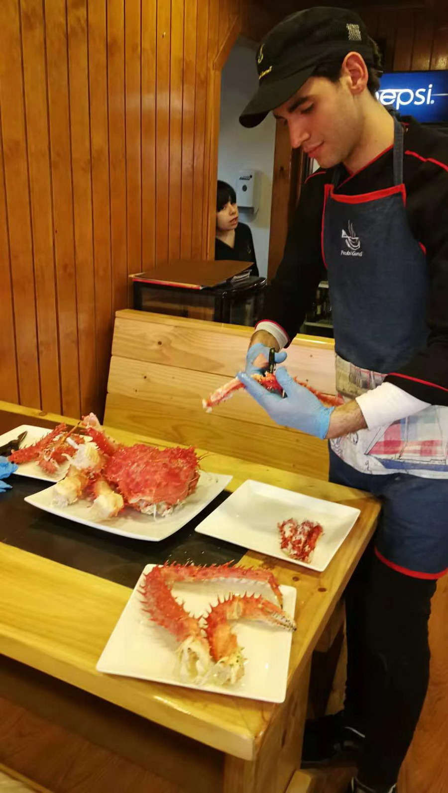 網(wǎng)友經(jīng)當?shù)芈眯猩绲耐扑]到一家蜘蛛蟹貿(mào)易公司參觀并在其附設(shè)的餐廳品嘗了海鮮大餐。李仁奇攝