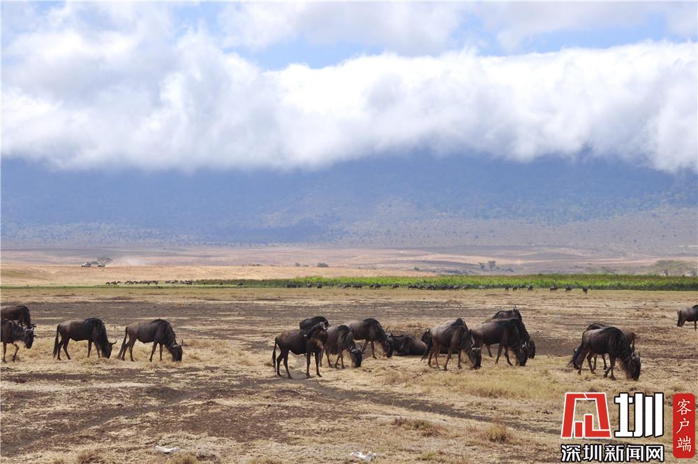 火山口周圍風(fēng)光綺麗,棲居著各種野生動(dòng)物,主要有野牛、角馬、斑馬、大羚羊、鬣狗、大象、河馬等,總數(shù)達(dá)3萬(wàn)余頭。李仁奇攝