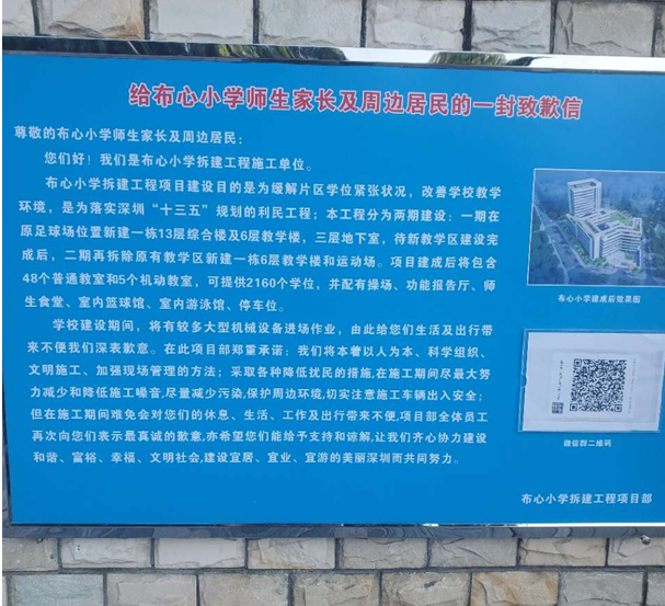 記者就此事聯(lián)系了羅湖區(qū)教育局。11月12日,記者獲悉羅湖區(qū)教育局回應(yīng)作出了官方回應(yīng)。首先對(duì)布心小學(xué)改擴(kuò)建工程進(jìn)行了介紹。該工程于2017年11月3日由羅湖區(qū)發(fā)展和改革局立項(xiàng),由羅湖區(qū)建筑工務(wù)署實(shí)施,委托深圳市天?。瘓F(tuán))股份有限公司代建。經(jīng)前期方案設(shè)計(jì)及相關(guān)法規(guī)程序?qū)徟?,?/span>2020年9月正式實(shí)施。有關(guān)重建項(xiàng)目的必要性,羅湖區(qū)教育局解釋:“本項(xiàng)目建設(shè)經(jīng)可行性研究論證,有利于緩解片區(qū)學(xué)位緊張狀況,改善學(xué)校教學(xué)環(huán)境。作為羅湖區(qū)重點(diǎn)民生工程,項(xiàng)目分兩期建設(shè):一期在原操場(chǎng)位置新建綜合樓、教學(xué)樓,二期在新教學(xué)區(qū)建成后拆除舊教學(xué)區(qū),新建教學(xué)樓和運(yùn)動(dòng)場(chǎng)。項(xiàng)目實(shí)施后辦學(xué)規(guī)模達(dá)到48班,增加學(xué)位540個(gè),并完善功能配套設(shè)施等?!?/span>