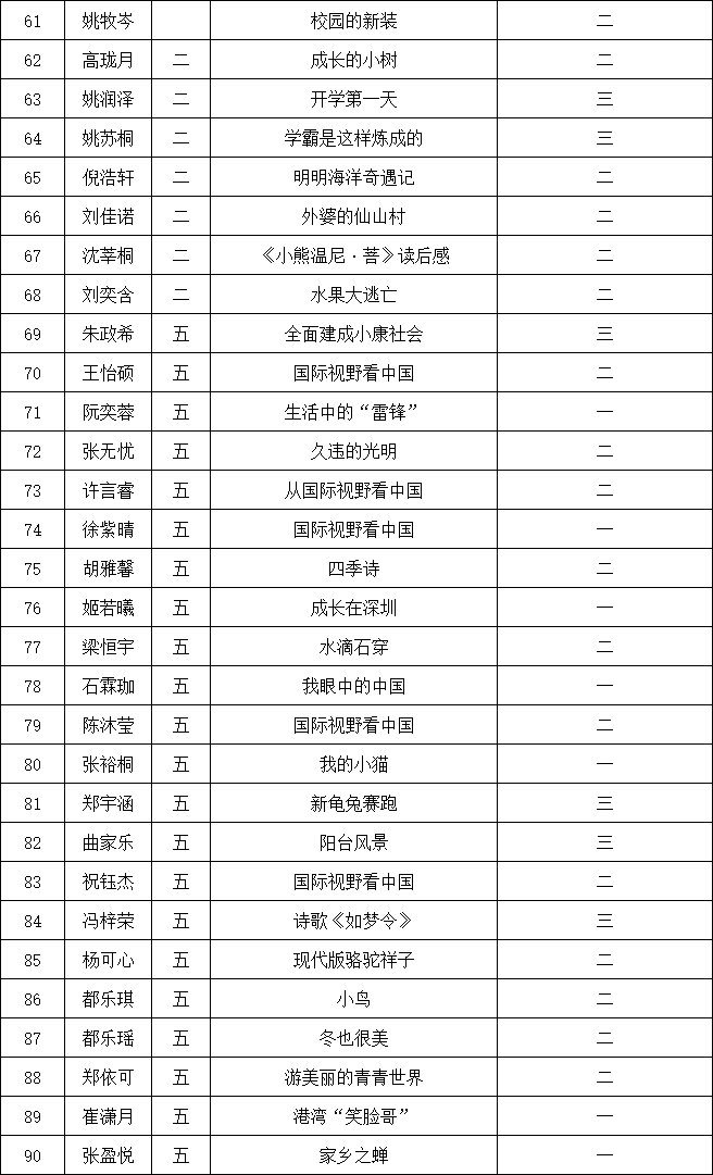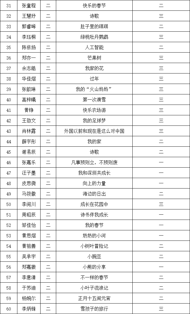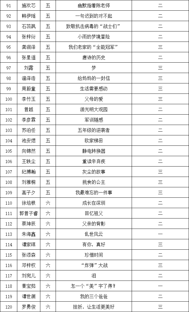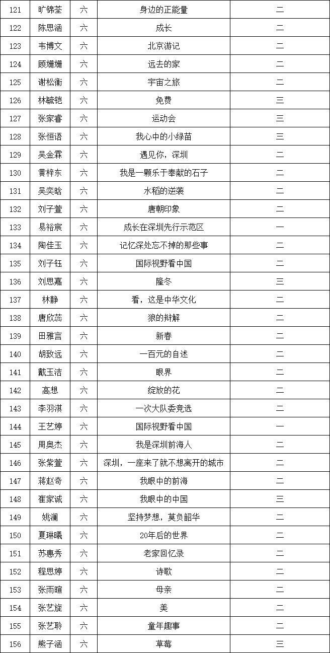 自2021年1月,活動征稿啟動以來,獲得了深圳市廣大中小學(xué)生、教師、文學(xué)愛好者的熱烈響應(yīng)積極參與,吸引了深圳百余所學(xué)校的上萬人關(guān)注報名。現(xiàn)公布南山實(shí)驗(yàn)教育集團(tuán)前海港灣學(xué)校校園專場晉級復(fù)賽名單如下: