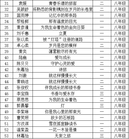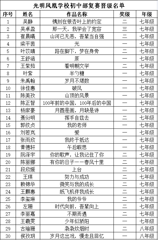 自2021年1月,活動征稿啟動以來,獲得了深圳市廣大中小學生、教師、文學愛好者的熱烈響應積極參與,吸引了深圳百余所學校的上萬人關注報名。現(xiàn)公布光明區(qū)鳳凰學校晉級復賽名單如下: