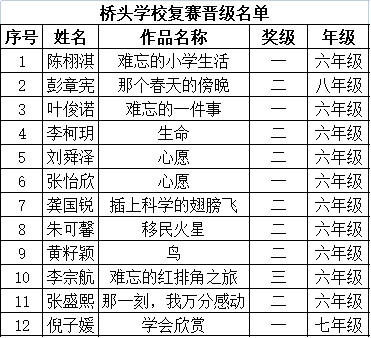 自2021年1月,活動(dòng)征稿啟動(dòng)以來(lái),獲得了深圳市廣大中小學(xué)生、教師、文學(xué)愛(ài)好者的熱烈響應(yīng)積極參與,吸引了深圳百余所學(xué)校的上萬(wàn)人關(guān)注報(bào)名?,F(xiàn)公布寶安區(qū)橋頭學(xué)校第二批晉級(jí)復(fù)賽名單如下: