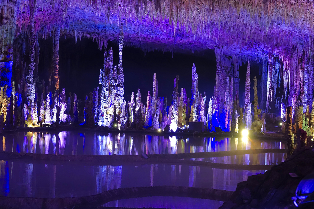 石花、石乳、石筍、石柱、石幔、石瀑布、石梯田等洞內(nèi)沉積物種類繁多;似仙闕樓臺(tái),若瑤池勝景,如海市蜃樓,讓人目不暇接。李仁奇 攝