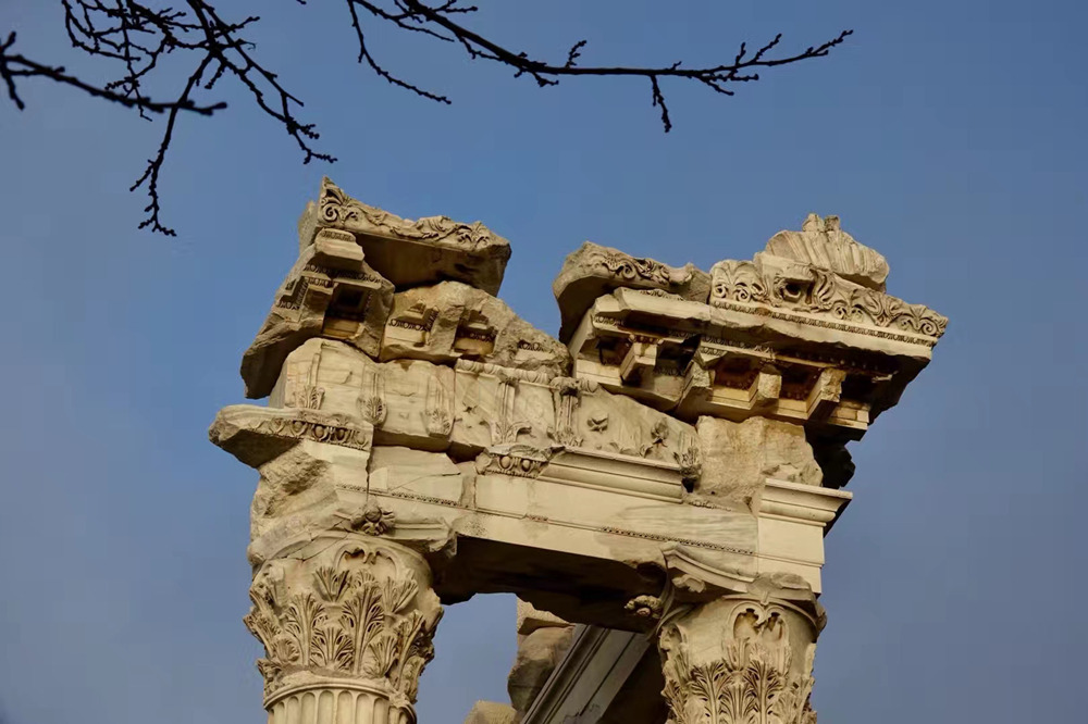 德國(guó)考古學(xué)家19世紀(jì)曾對(duì)這一遺址考古發(fā)掘,部分祭壇和殘存浮雕經(jīng)修繕裝配后現(xiàn)陳列在德國(guó)柏林的帕加馬博物館。李仁奇 攝