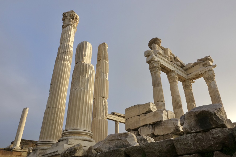 羅馬帝國(guó)時(shí),城市遷到山下的平原。山頂和山坡高處的古跡包括一座劇場(chǎng)、雅典娜神廟以及宙斯大祭壇。李仁奇 攝