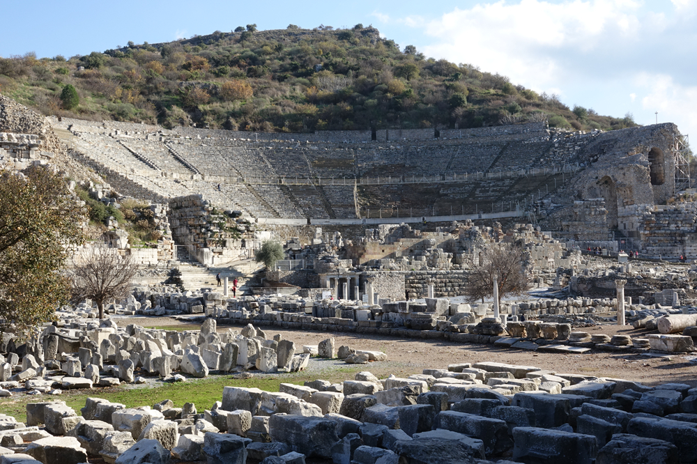從北門(下層)入口進(jìn)入古城。一路就置身于大劇場的雄偉。李仁奇 攝