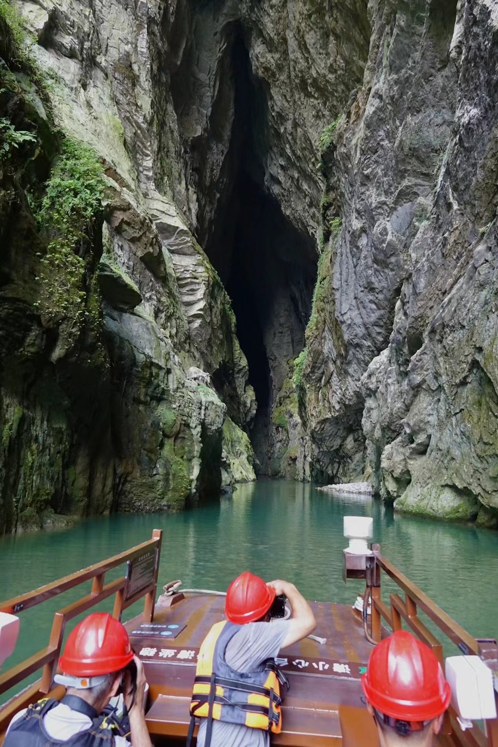 濯水古鎮(zhèn)附近神奇的蒲花暗河是濯水景區(qū)的組成部分。它由4條河流匯聚而成,全長約1.6公里,其中暗河部分長700余米,河水最深處達(dá)20余米,河道最窄處僅3米。李仁奇攝