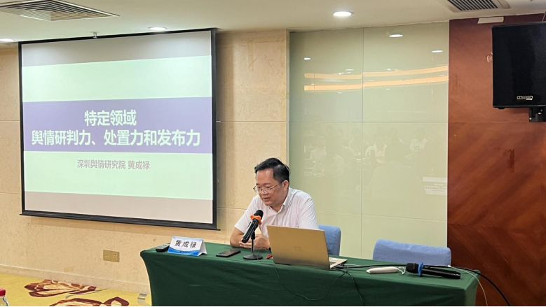 深圳新聞網(wǎng)2024年8月2日訊(記者 蔡雪曼 實習(xí)生 謝臻兒)為提高全市特定領(lǐng)域人員輿情工作素養(yǎng),深化輿情意識和認知,助力營造良好的輿論氛圍,7月25日下午,某市直單位舉辦專題培訓(xùn)班,邀請深圳輿情研究院執(zhí)行院長黃成祿擔(dān)任授課老師,圍繞《特定領(lǐng)域輿情研判力、處置力和發(fā)布力》主題展開授課。