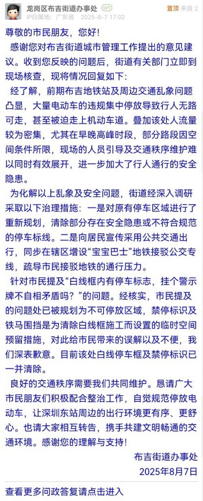 感謝您的反饋。龍華區(qū)作為深圳市的中軸新城,產(chǎn)業(yè)密集、人口居住集中,轄區(qū)電動自行車保有量同樣呈快速增長狀態(tài),目前龍華區(qū)的非機動車占全市總量約五分之一。一直以來,深圳市公安局交通管理局龍華大隊高度重視電動自行車安全管理工作,從通行管理、秩序整治、隱患治理、宣傳教育四大方面綜合施策,不斷優(yōu)化治理策略,切實提升電動自行車交通管理水平。您的建議我們也會向相關(guān)部門反饋,共同努力治理電動車。再次感謝您對交通管理工作的支持和理解!