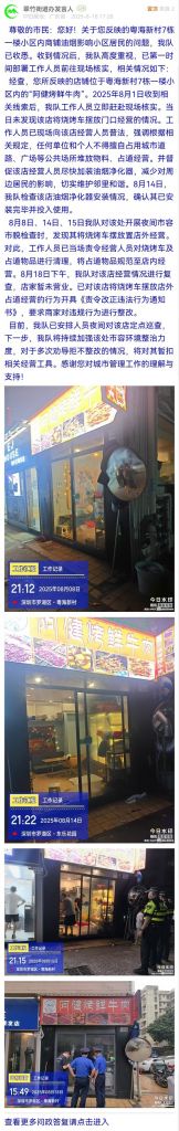 目前,我隊已安排人員夜間對該店定點巡查,下一步,我隊將持續(xù)加強該處市容環(huán)境整治力度,對于多次勸導拒不整改的情況,將對其暫扣相關(guān)經(jīng)營工具。感謝您對城市管理工作的理解與支持!