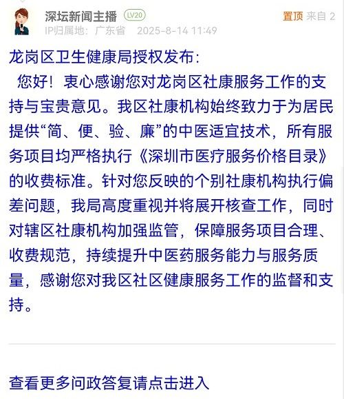 您好!衷心感謝您對龍崗區(qū)社康服務工作的支持與寶貴意見。我區(qū)社康機構(gòu)始終致力于為居民提供“簡、便、驗、廉”的中醫(yī)適宜技術(shù),所有服務項目均嚴格執(zhí)行《深圳市醫(yī)療服務價格目錄》的收費標準。針對您反映的個別社康機構(gòu)執(zhí)行偏差問題,我局高度重視并將展開核查工作,同時對轄區(qū)社康機構(gòu)加強監(jiān)管,保障服務項目合理、收費規(guī)范,持續(xù)提升中醫(yī)藥服務能力與服務質(zhì)量,感謝您對我區(qū)社區(qū)健康服務工作的監(jiān)督和支持。