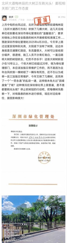 31. 帖文《北環(huán)大道梅林段的大樹正在剃光頭!鄙視相關(guān)部門的工作態(tài)度》