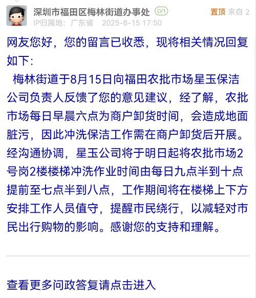 17. 帖文《呼吁福田農(nóng)批每日早晨沖水保潔方式進行改進》