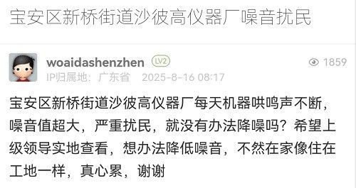 23. 帖文《寶安區(qū)新橋街道沙彼高儀器廠噪音擾民》