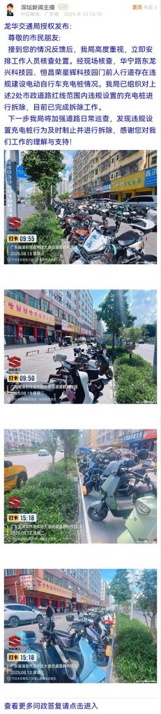 4. 帖文《龍華大浪街道綠化帶違規(guī)充電樁還在裝?》